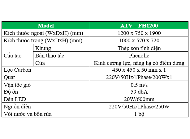 • Tấm lọc Carbon: được gắn trên trần tủ để lọc khí thải độc hại trước khi thải ra ngoài môi trường giúp bảo vệ môi trường và người sử dụng