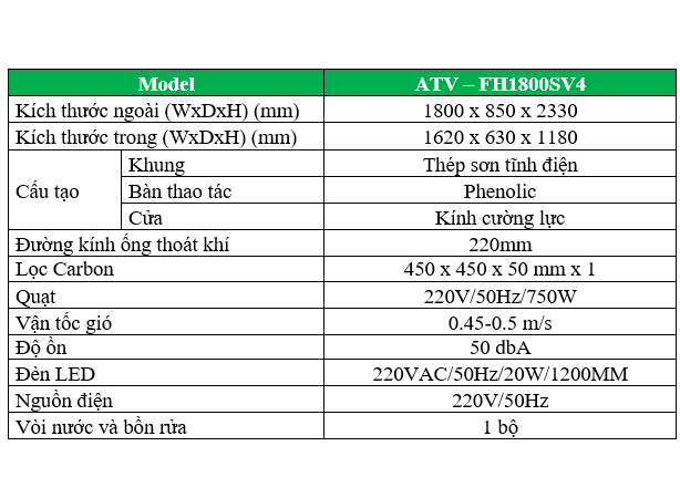 • Tấm lọc Carbon: được gắn trên trần tủ để lọc khí thải độc hại trước khi thải ra ngoài môi trường giúp bảo vệ môi trường và người sử dụng