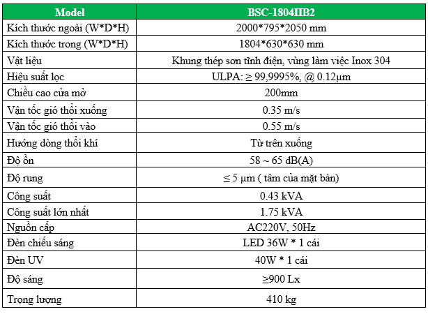• Lọc ULPA loại bỏ đến 99,9995% các hạt bụi kích thước từ 0.12 micromet tạo không khí trong sạch và an toàn ra môi trường. Chất lượng không khí tối thiểu ISO 4 trong khu vực làm việc. Mọi bộ lọc ULPA sẽ được kiểm tra để đảm bảo không bị rò rỉ