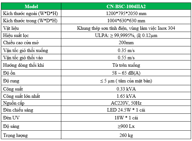 Khoang làm việc: Buồng áp suất âm và hai lớp xung quanh đảm bảo không rò rỉ, không ô nhiềm. Cửa sổ phía trước sử dụng hệ thống nâng treo và kính cường lực dày ~ 5mm. Cửa kính có thể dễ dàng làm sạch. Vùng làm việc bằng Inox 304 có thể vệ sinh. Khoang chứa dưới vùng làm việc có dung tích 4 lít