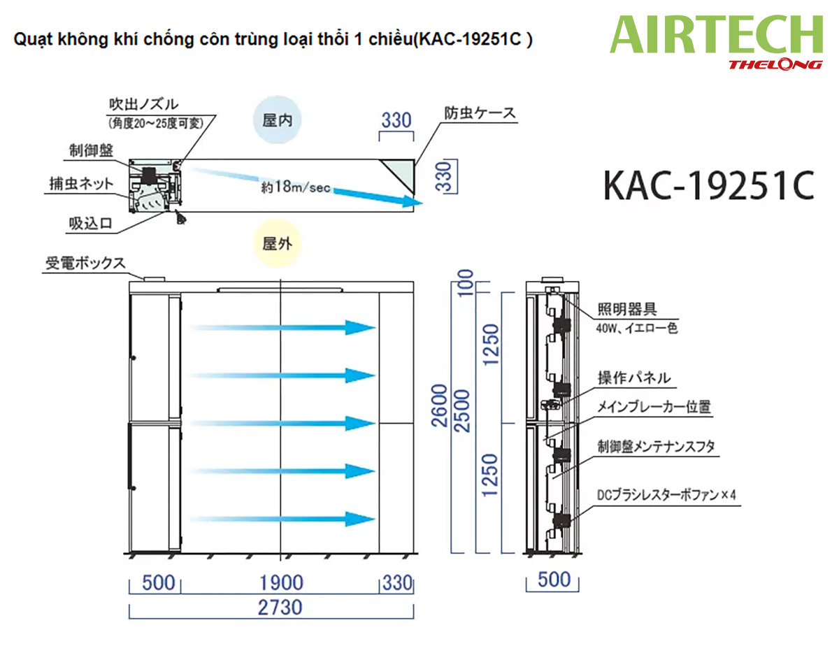 Quạt không khí chống côn trùng loại thổi 1 chiều