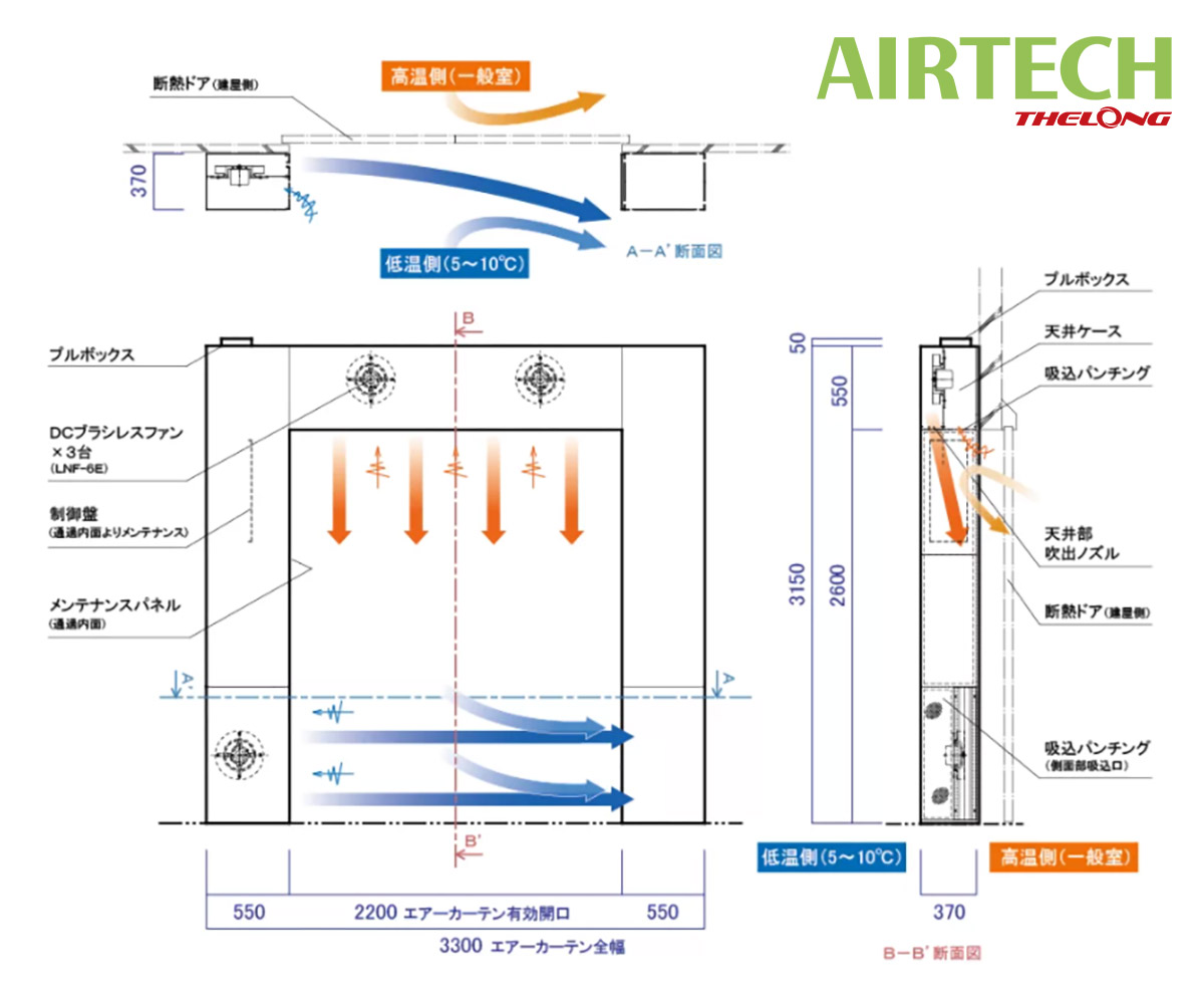 Là rèm không khí phòng chống sự rò rỉ khí lạnh và sự xâm nhập khí nóng khi đóng mở cửa của kho bảo quản lạnh loại lớn. Có khả năng phòng chống sự hư hại của thực phẩm, vật phẩm bên trong kho và giúp tiết kiệm điện bên trong kho, nhà máy...