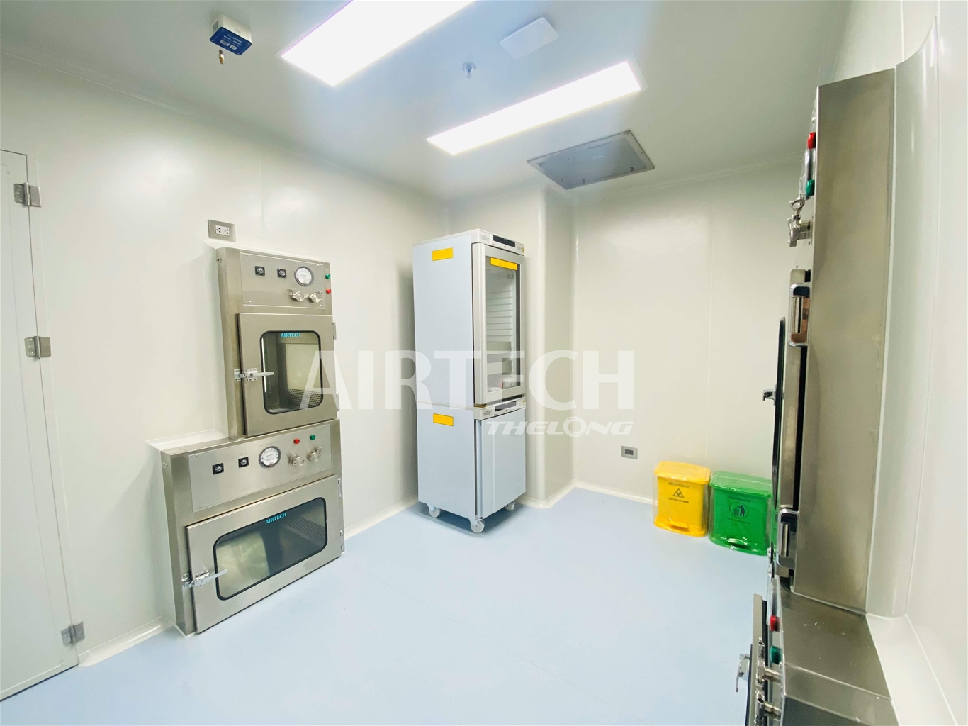 Hệ thống passbox là một thiết bị quan trọng trong phòng sạch, giúp chuyển mẫu giữa các khu vực mà không làm ô nhiễm môi trường bên trong. Đặc biệt trong phòng sạch Class-6, yêu cầu về độ sạch sẽ và kiểm soát ô nhiễm cực kỳ nghiêm ngặt. Hệ thống passbox của Airtech Thế Long được thiết kế với hai ngăn riêng biệt, một ngăn để đưa mẫu vào và một ngăn để đưa mẫu ra, nhằm ngăn chặn sự lây lan của vi khuẩn và bụi bẩn.