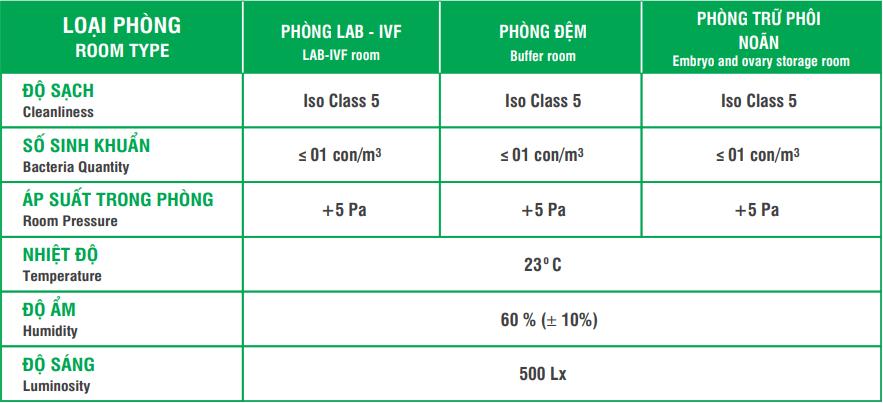 - Vật liệu dùng để xây dựng, lắp đặt, sơn sửa phòng IVF phải hạn chế tối đa mức giải phóng các chất hữu cơ độc hại trong không khí (VOCs) và các độc tố gây hại đến phôi thai, phù hợp với tiêu chuẩn phòng sạch.