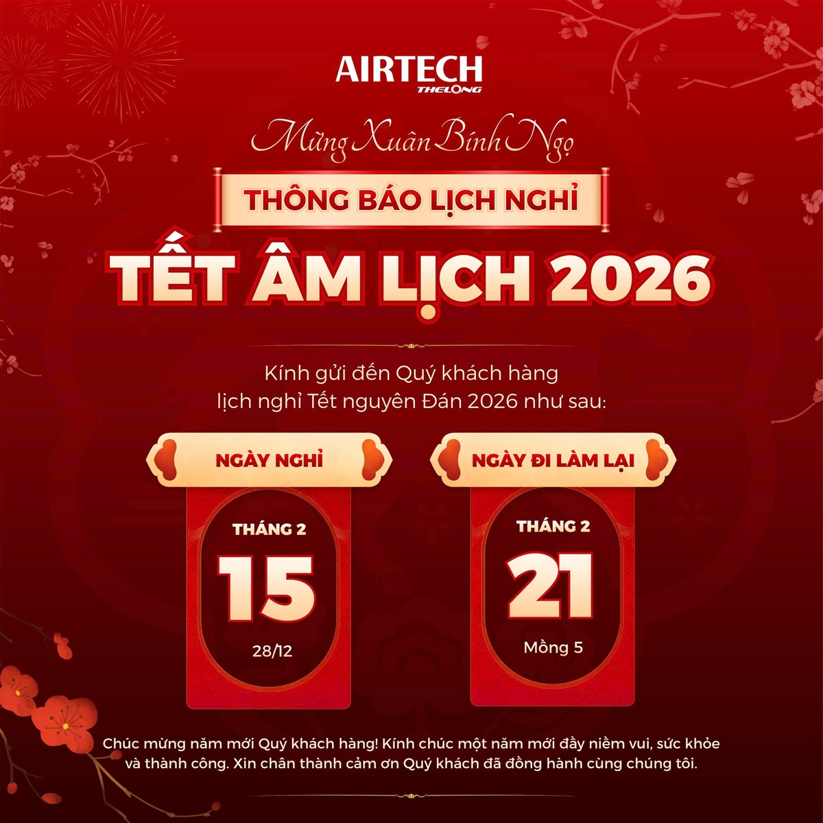 🧧 AIRTECH THẾ LONG THÔNG BÁO LỊCH NGHỈ TẾT ÂM LỊCH 2026