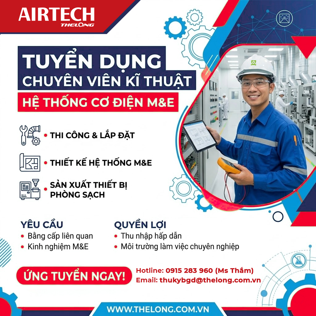 AIRTECH THẾ LONG đang tìm kiếm KỸ SƯ DỰ ÁN chuyên về Hệ thống Cơ - Điện (M&E) và HVAC để gia nhập đội ngũ chuyên nghiệp của chúng tôi tại Hà Nội.